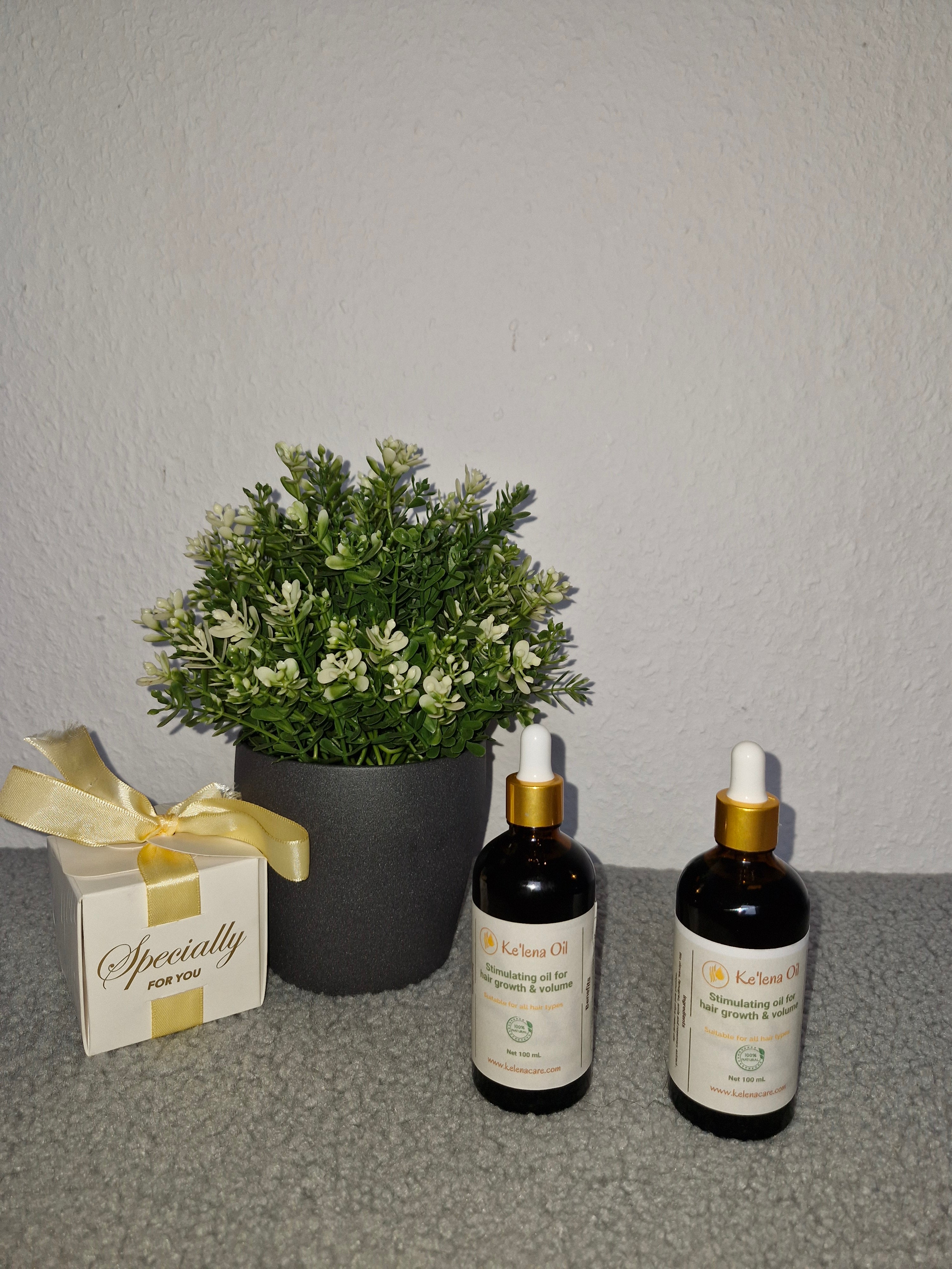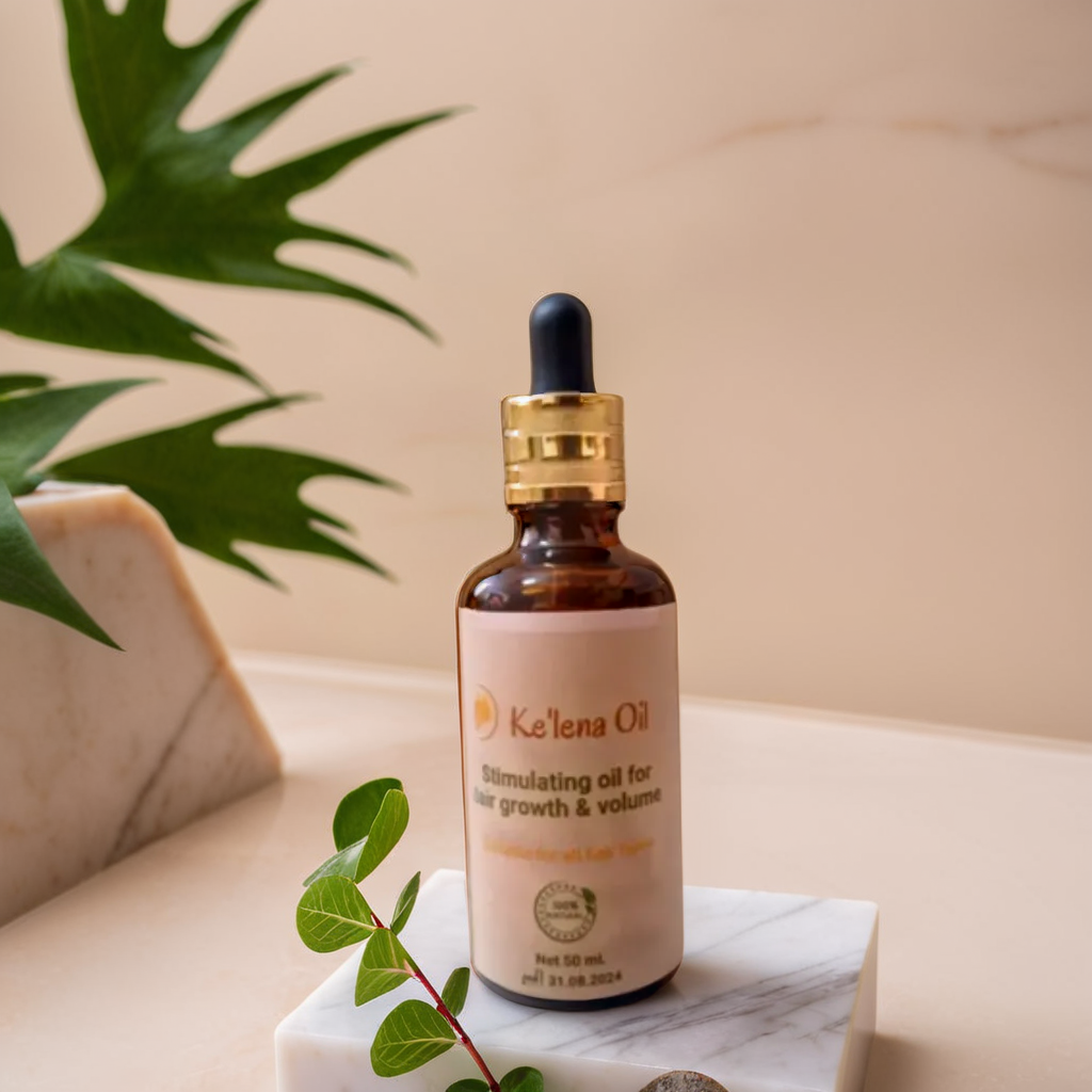 Ke'lena Oil is made from a carefully selected blend of natural oils and seeds like rosmary, cloves, amla , olive, coconot oil and more, which are rich in essential vitamins and fatty acids. These ingredients penetrate deep into the hair shaft, providing intense nourishment without harmful chemicals.